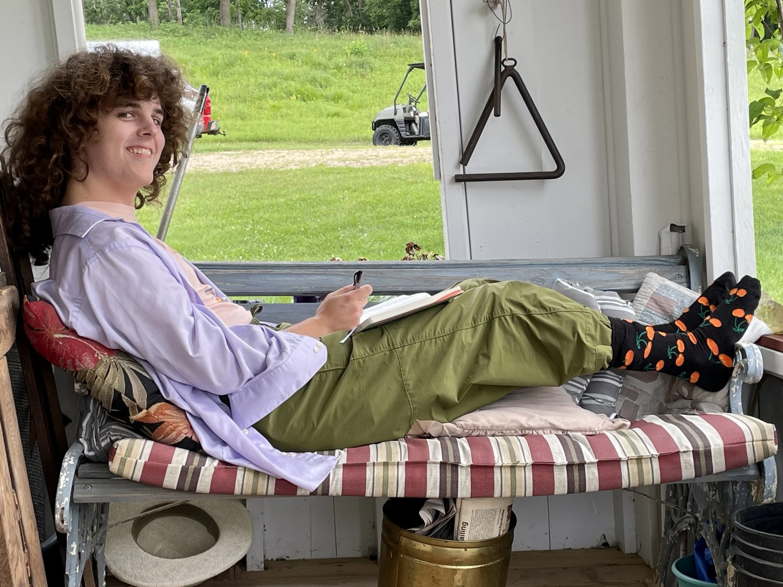Residency on the Farm allowed for many different activities that were valuable to my writing process. I spent a lot of my time reading or writing while perched either in a chair on the house's porch or at a table in the barn. When I needed to take a break, or when I was struggling with a certain line, there were walking trails through the woods where I could pace and think. Last, it was intellectually rewarding and artistically inspirational to spend every night in the company of other talented artists!